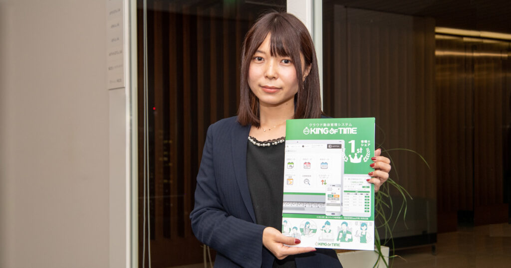 クラウド勤怠管理システム「KING OF TIME」の企画・開発・運営を行っています。弊社には労務士の先生も在籍しており、「KING OF TIME」は、時間外の上限規制や年間有給休暇の取得義務の管理など、働き方改革に関連する機能も備えています。2019年4月から働き方改革関連でお悩みのお客さまからのご相談が増えておりますが、そういったお客さまへも対応していることが1つの特長になります。