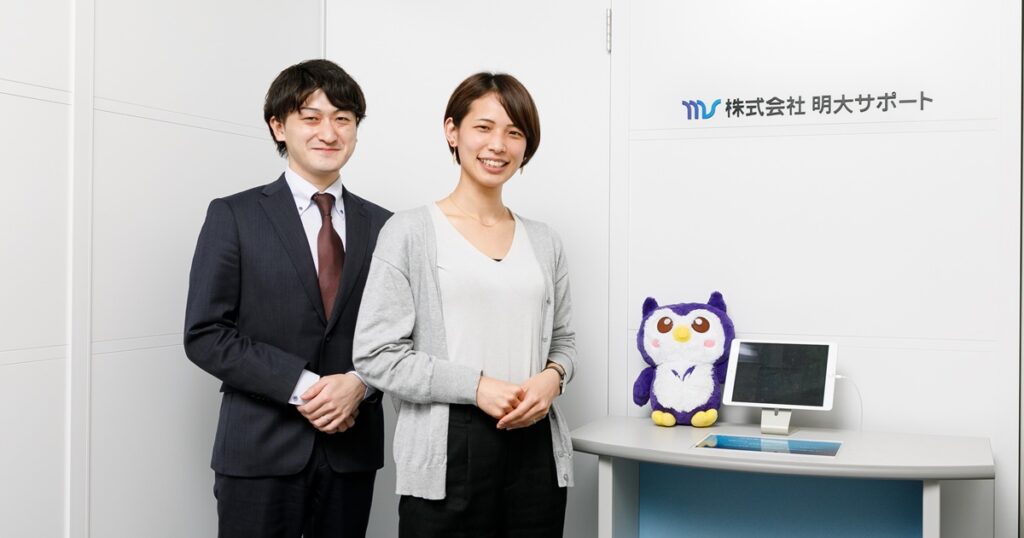 私たちは、明治大学の運営で培ったさまざまなスキルやノウハウを、他の大学へ展開していく営業活動も行っています。明大サポートが大学の運営に関して、どのようなサービスを提供し、どのようなサービスを運営しているのかは、当社のホームページを訪れていただき、チャットボットを回遊していただければご理解いただけると思います。職員の手が足りないといったお困り事がある場合は、ぜひ弊社の活用をご検討ください。