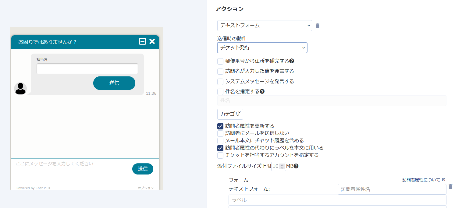 チャットボット+のアクション、テキストフォーム設定画面をリニューアルしました。直感的に操作ができるようになっております。