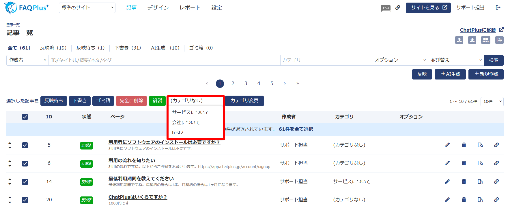 AI検索対応のFAQシステム「FAQPlus」において、カテゴリの一括変更機能をリリースしました。
