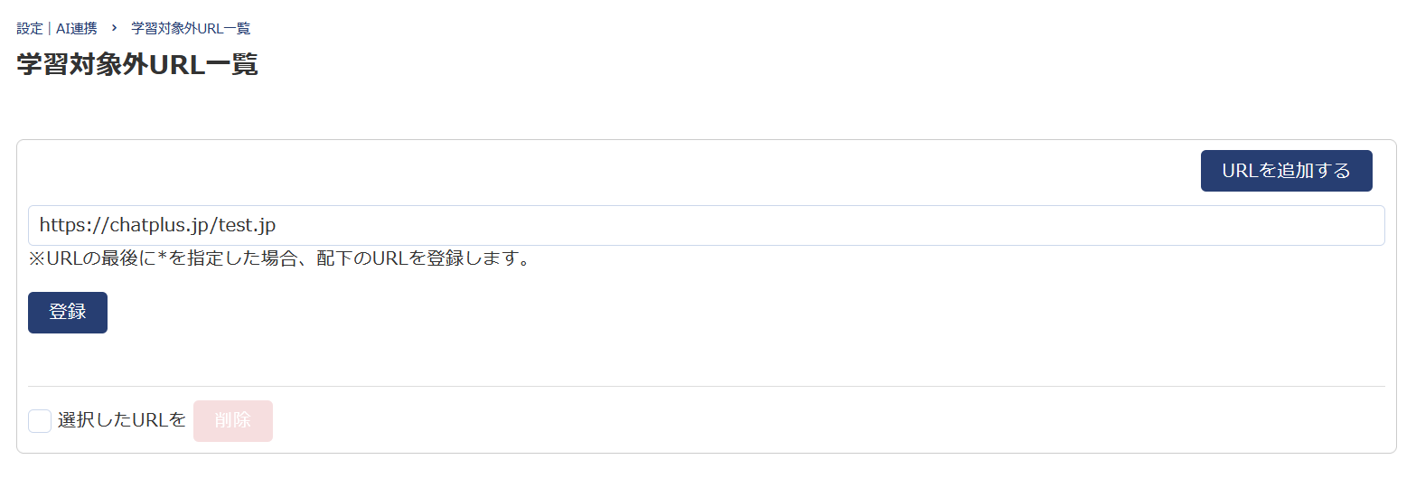 ページとしては存在していても、AIの回答に使用したくないURLを指定できるようになりました。効率的にAIチャットボットの設定ができます。