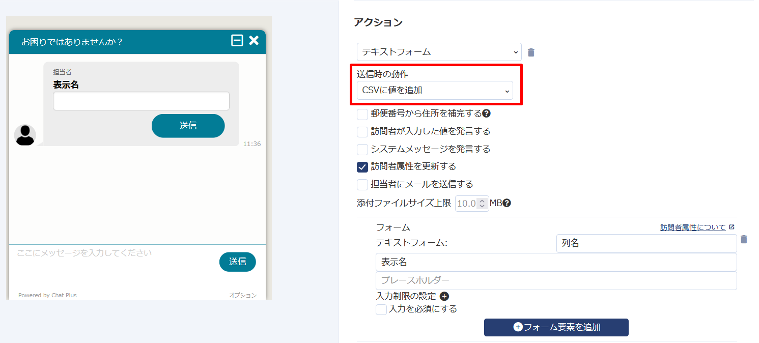 チャットボット+ テキストフォームのアクションに「CSVに値を追加」をリリースしました。
