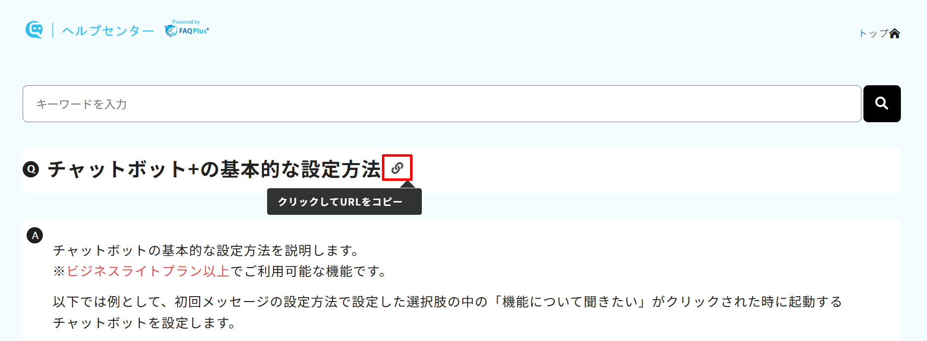 「FAQPlus」記事のURLコピーボタンを設置可能に