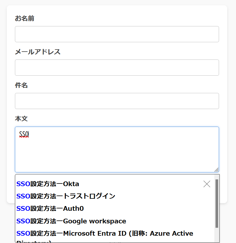 AIエージェント協働型FAQシステム、FAQPlusで作成した記事をWebページ内の問い合わせフォームにサジェスト表示ができるようになりました。