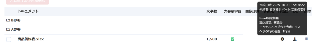 生成AI 学習済のExcelファイルの設定確認機能を追加