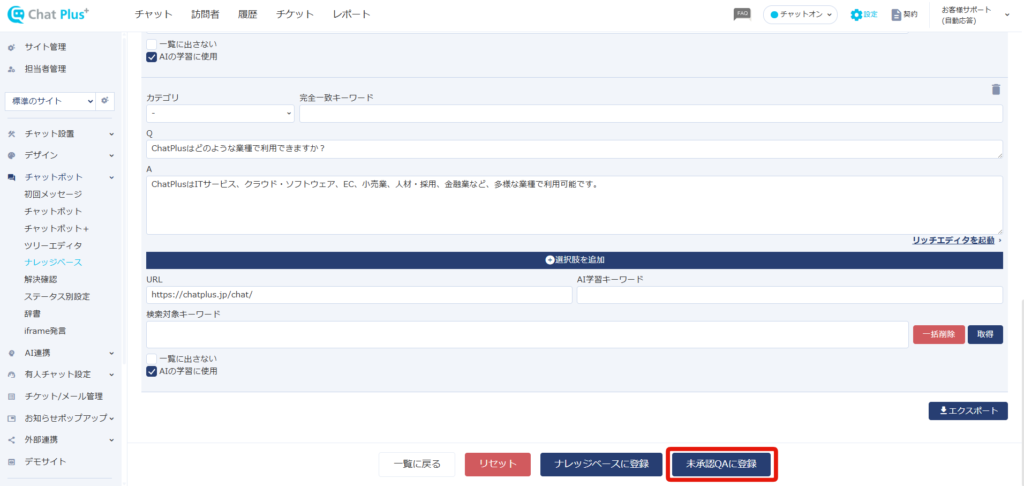 ファイルやサイトURLから生成したQ&Aを、生成直後に「未承認QA」に直接登録できる機能を追加しました。