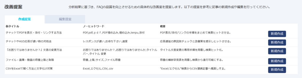 AIエージェント協働型FAQシステム、FAQPlusで前月の分析結果を元にAIが新しい記事の作成提案や既存記事の編集を提案する機能を追加しました。
