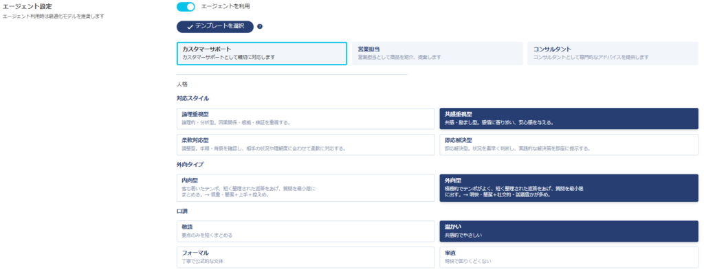 AI AgentPlus(旧AIチャットボットプラン/生成AI)にエージェント設定を追加しました。