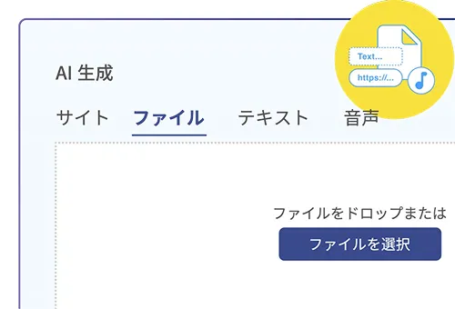 各種資料、音声データ等からAIエージェントが自動で記事を作成します。