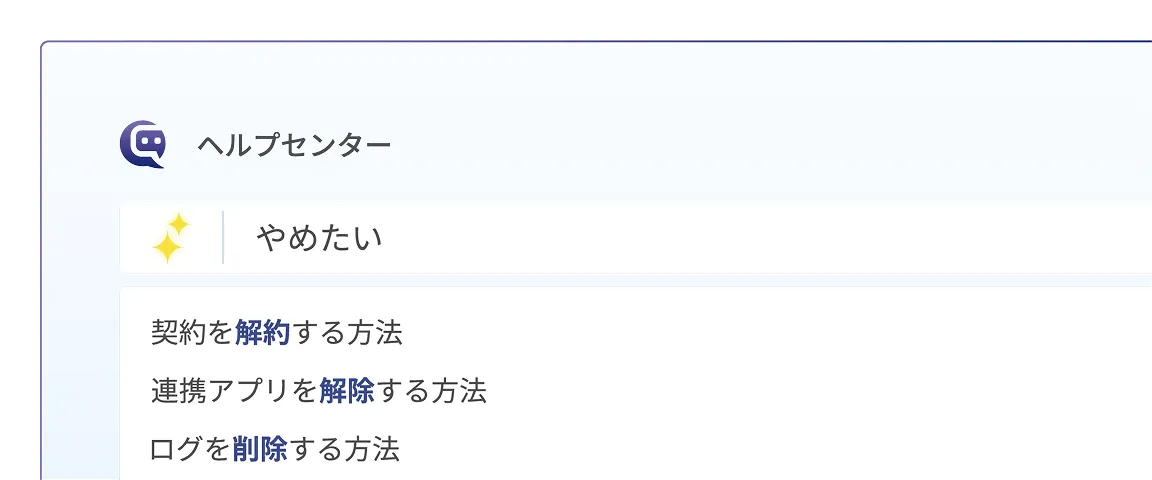 「解約」 「退会」 「やめたい」など、表現が違っても同じ意味として理解し、適切な回答を表示します。