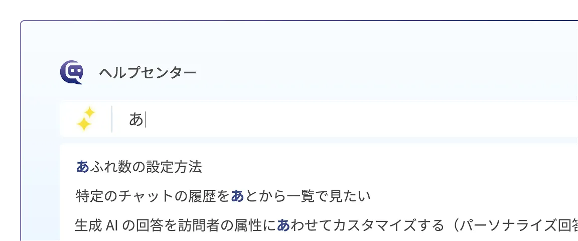 質問を1文字入力するごとに、関連性の高い質問候補を瞬時に表示。入力の手間を省きます。